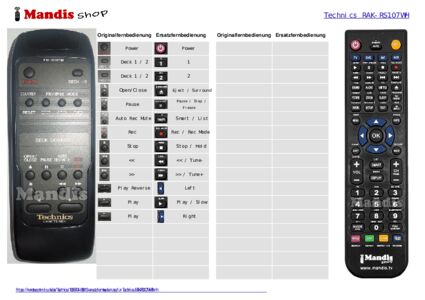 Home > Marken > Fernbedienungen Technics > Fernbedienung für TECHNICS RAK-RS107WH