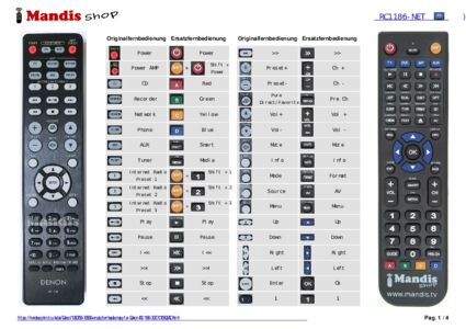 Ein Dokument ist enthalten, um die Verwendung der neuen Fernbedienung zu erleichtern, indem es die Tastenbelegung zeigt.