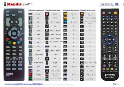 Ein Dokument ist enthalten, um die Verwendung der neuen Fernbedienung zu erleichtern, indem es die Tastenbelegung zeigt.
