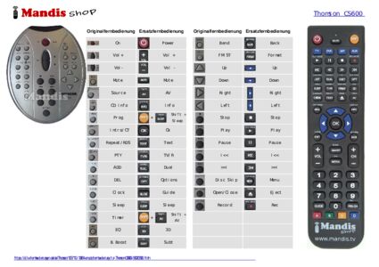 Frage an Thomson CS600 (56020590) Fernbedienung