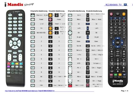 Ein Dokument ist enthalten, um die Verwendung der neuen Fernbedienung zu erleichtern, indem es die Tastenbelegung zeigt.