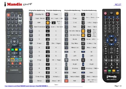 Diese Fernbedienung ersetzt Ihre NC127 (CB1160HDD) in vollem Umfang und bietet alle Funktionen des Originals.