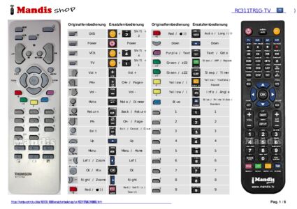 Ein Dokument ist enthalten, um die Verwendung der neuen Fernbedienung zu erleichtern, indem es die Tastenbelegung zeigt.