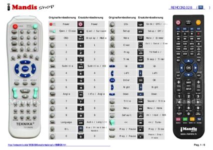 Ein Dokument ist enthalten, um die Verwendung der neuen Fernbedienung zu erleichtern, indem es die Tastenbelegung zeigt.