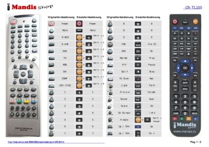 Ein Dokument ist enthalten, um die Verwendung der neuen Fernbedienung zu erleichtern, indem es die Tastenbelegung zeigt.