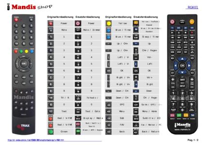 Ein Dokument ist enthalten, um die Verwendung der neuen Fernbedienung zu erleichtern, indem es die Tastenbelegung zeigt.