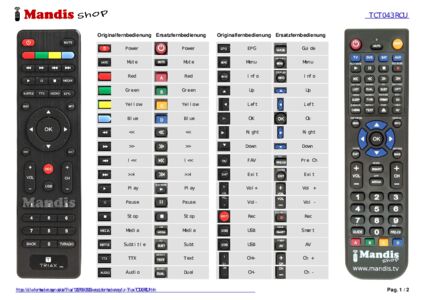 Ein Dokument ist enthalten, um die Verwendung der neuen Fernbedienung zu erleichtern, indem es die Tastenbelegung zeigt.