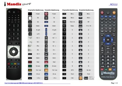 Diese Fernbedienung ersetzt Ihre RC 5112 (30071019) in vollem Umfang und bietet alle Funktionen des Originals.