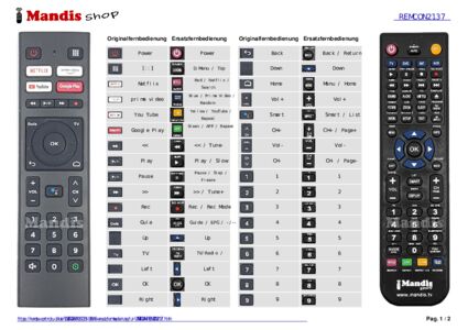 Ein Dokument ist enthalten, um die Verwendung der neuen Fernbedienung zu erleichtern, indem es die Tastenbelegung zeigt.