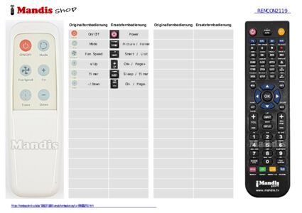 Diese Fernbedienung ersetzt Ihre REMCON2119 in vollem Umfang und bietet alle Funktionen des Originals.