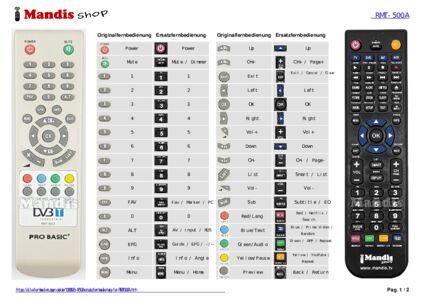 Ein Dokument ist enthalten, um die Verwendung der neuen Fernbedienung zu erleichtern, indem es die Tastenbelegung zeigt.