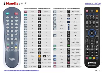Ein Dokument ist enthalten, um die Verwendung der neuen Fernbedienung zu erleichtern, indem es die Tastenbelegung zeigt.