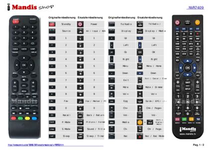 Ein Dokument ist enthalten, um die Verwendung der neuen Fernbedienung zu erleichtern, indem es die Tastenbelegung zeigt.