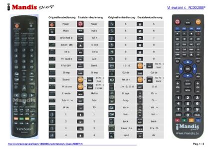 Ein Dokument ist enthalten, um die Verwendung der neuen Fernbedienung zu erleichtern, indem es die Tastenbelegung zeigt.