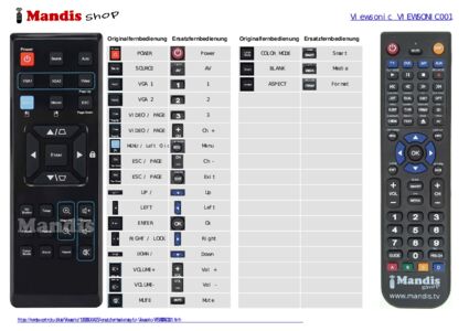 Diese Fernbedienung ersetzt die meisten Funktionen Ihres VIEWSONIC001. Es ist keine Universalfernbedienung, sondern eine Kopie mit den meisten Tasten und Funktionen Ihres Originals.
