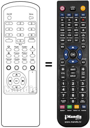 Fernbedienung, die das Original und die Gesamtheit seiner Funktionen, vollständig ersetzt. Es handelt sich jedoch nicht um eine Universalfernbedienung sondern um eine Fernbedienung die das Original ersetzt. Sie erhalten eine nach Einlegen der Batterien sofort einsatzbereite Fernbedienung. Jegliches Programmieren entfällt. Wir geben umfassende Garantie dafür, dass diese Fernbedienung alle Funktionen der Originalfernbedienung erfüllt.