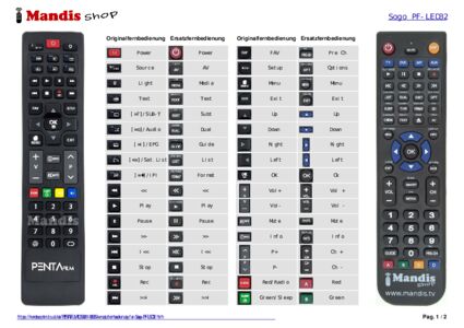 Ein Dokument ist enthalten, um die Verwendung der neuen Fernbedienung zu erleichtern, indem es die Tastenbelegung zeigt.