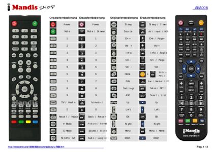 Diese Fernbedienung ersetzt Ihre AKA006 in vollem Umfang und bietet alle Funktionen des Originals.