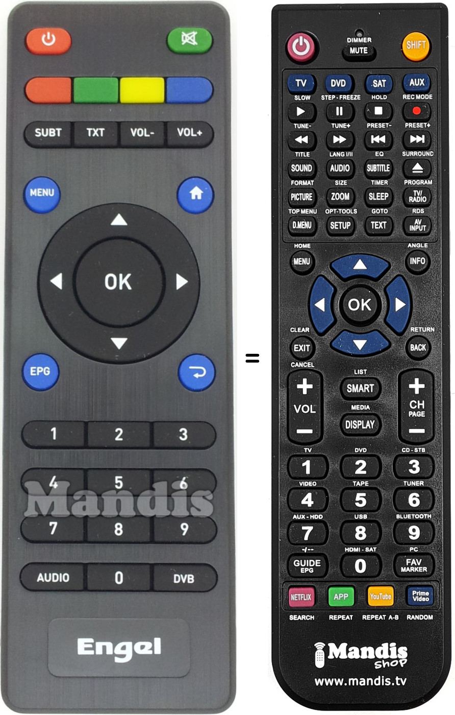 Below, we will show you the correspondence between each button on the original remote control and the button that performs the same function on the replacement remote control. In some cases, you may need to press the SHIFT key before pressing another button to perform certain actions. These additional functions are often not widely used and are included to facilitate understanding of the replacement remote control, or because the original remote control has more buttons than its equivalent.