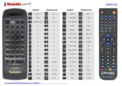 This remote control fully replaces your EUR642101 and offers all the functions of the original.