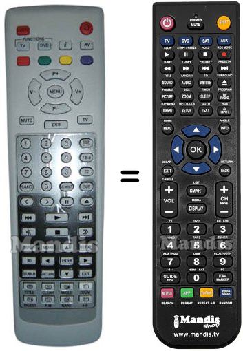 Below, we will show you the correspondence between each button on the original remote control and the button that performs the same function on the replacement remote control. In some cases, you may need to press the SHIFT key before pressing another button to perform certain actions. These additional functions are often not widely used and are included to facilitate understanding of the replacement remote control, or because the original remote control has more buttons than its equivalent.