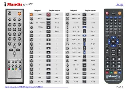 Below, we will show you the correspondence between each button on the original remote control and the button that performs the same function on the replacement remote control. In some cases, you may need to press the SHIFT key before pressing another button to perform certain actions. These additional functions are often not widely used and are included to facilitate understanding of the replacement remote control, or because the original remote control has more buttons than its equivalent.