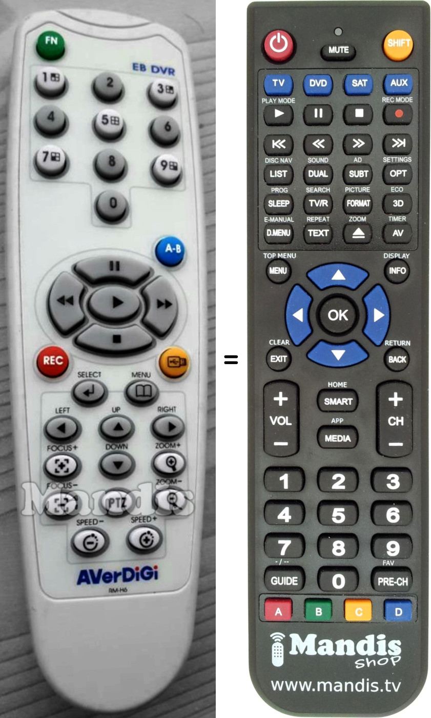 This remote control fully replaces your AVerDiGi (RM-H6) and offers all the functions of the original.