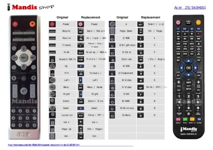 Home > Brands > Remote controls Acer > Remote control for ACER 25.J540H.001
