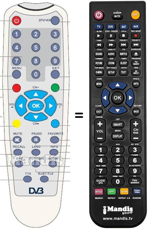 Remote control to replace the original and all its functions.