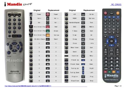 This remote control fully replaces your U0090142U (RC-ZAS01) and offers all the functions of the original.
