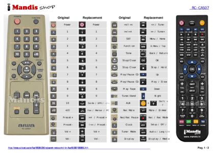 Below, we will show you the correspondence between each button on the original remote control and the button that performs the same function on the replacement remote control. In some cases, you may need to press the SHIFT key before pressing another button to perform certain actions. These additional functions are often not widely used and are included to facilitate understanding of the replacement remote control, or because the original remote control has more buttons than its equivalent.