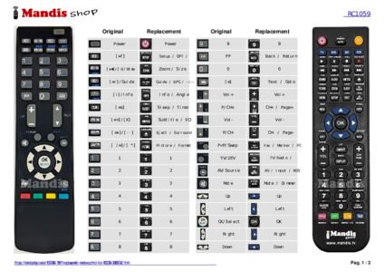 A document is included to help you use the new remote control easily, showing the button correspondence.
