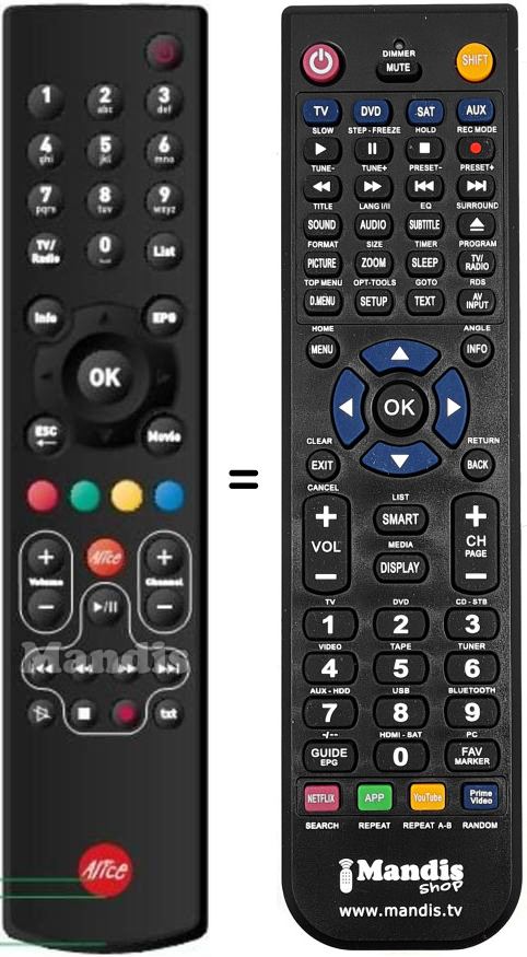 Remote control to replace the original and all its functions.