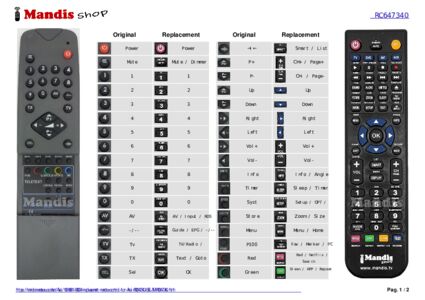 A document is included to help you use the new remote control easily, showing the button correspondence.