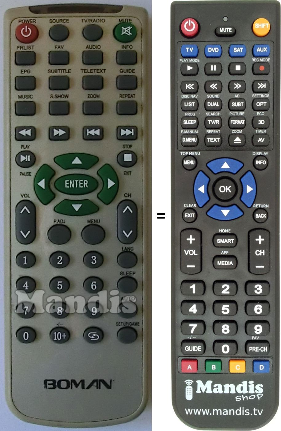 Below, we will show you the correspondence between each button on the original remote control and the button that performs the same function on the replacement remote control. In some cases, you may need to press the SHIFT key before pressing another button to perform certain actions. These additional functions are often not widely used and are included to facilitate understanding of the replacement remote control, or because the original remote control has more buttons than its equivalent.