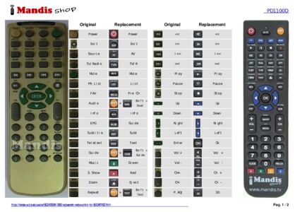 A document is included to help you use the new remote control easily, showing the button correspondence.