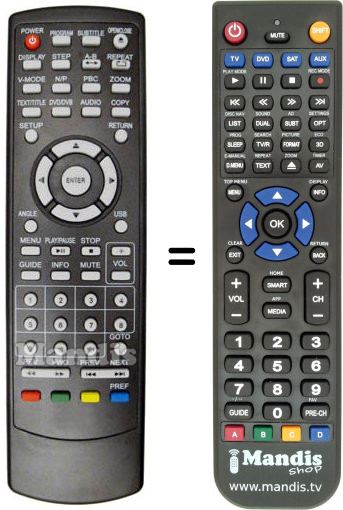 Below, we will show you the correspondence between each button on the original remote control and the button that performs the same function on the replacement remote control. In some cases, you may need to press the SHIFT key before pressing another button to perform certain actions. These additional functions are often not widely used and are included to facilitate understanding of the replacement remote control, or because the original remote control has more buttons than its equivalent.