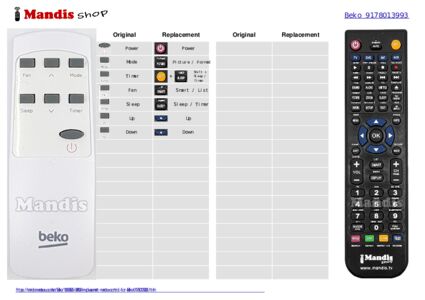 Home > Air conditioning brands > Beko air conditioning remote controls > Remote control for Beko 9178013993