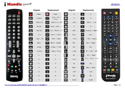 This remote control fully replaces your BenQ002 and offers all the functions of the original.