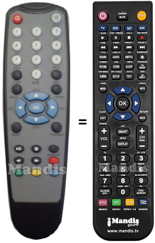 Remote control to replace the original and all its functions.