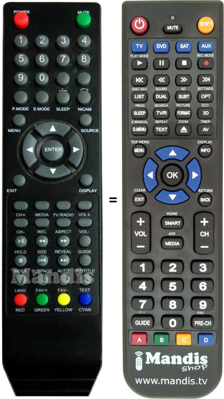 This remote control performs all the functions of the original remote control: