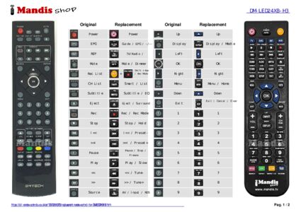 Below, we will show you the correspondence between each button on the original remote control and the button that performs the same function on the replacement remote control. In some cases, you may need to press the SHIFT key before pressing another button to perform certain actions. These additional functions are often not widely used and are included to facilitate understanding of the replacement remote control, or because the original remote control has more buttons than its equivalent.