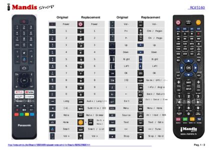 Below, we will show you the correspondence between each button on the original remote control and the button that performs the same function on the replacement remote control. In some cases, you may need to press the SHIFT key before pressing another button to perform certain actions. These additional functions are often not widely used and are included to facilitate understanding of the replacement remote control, or because the original remote control has more buttons than its equivalent.