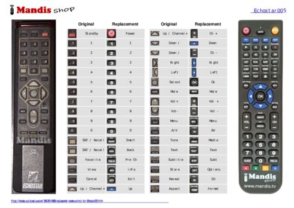 Attention: This remote control replaces most of the functions of your Echostar005, but not all. The main functions are included, but some secondary functions may not be available.