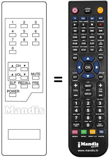 Remote control to replace the original and all its functions.