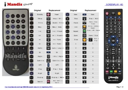 Below, we will show you the correspondence between each button on the original remote control and the button that performs the same function on the replacement remote control. In some cases, you may need to press the SHIFT key before pressing another button to perform certain actions. These additional functions are often not widely used and are included to facilitate understanding of the replacement remote control, or because the original remote control has more buttons than its equivalent.