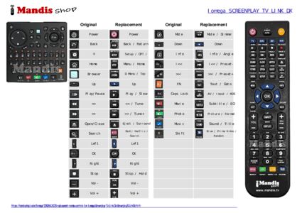 Below, we will show you the correspondence between each button on the original remote control and the button that performs the same function on the replacement remote control. In some cases, you may need to press the SHIFT key before pressing another button to perform certain actions. These additional functions are often not widely used and are included to facilitate understanding of the replacement remote control, or because the original remote control has more buttons than its equivalent.