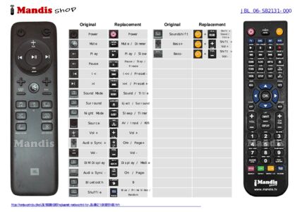 Below, we will show you the correspondence between each button on the original remote control and the button that performs the same function on the replacement remote control. In some cases, you may need to press the SHIFT key before pressing another button to perform certain actions. These additional functions are often not widely used and are included to facilitate understanding of the replacement remote control, or because the original remote control has more buttons than its equivalent.