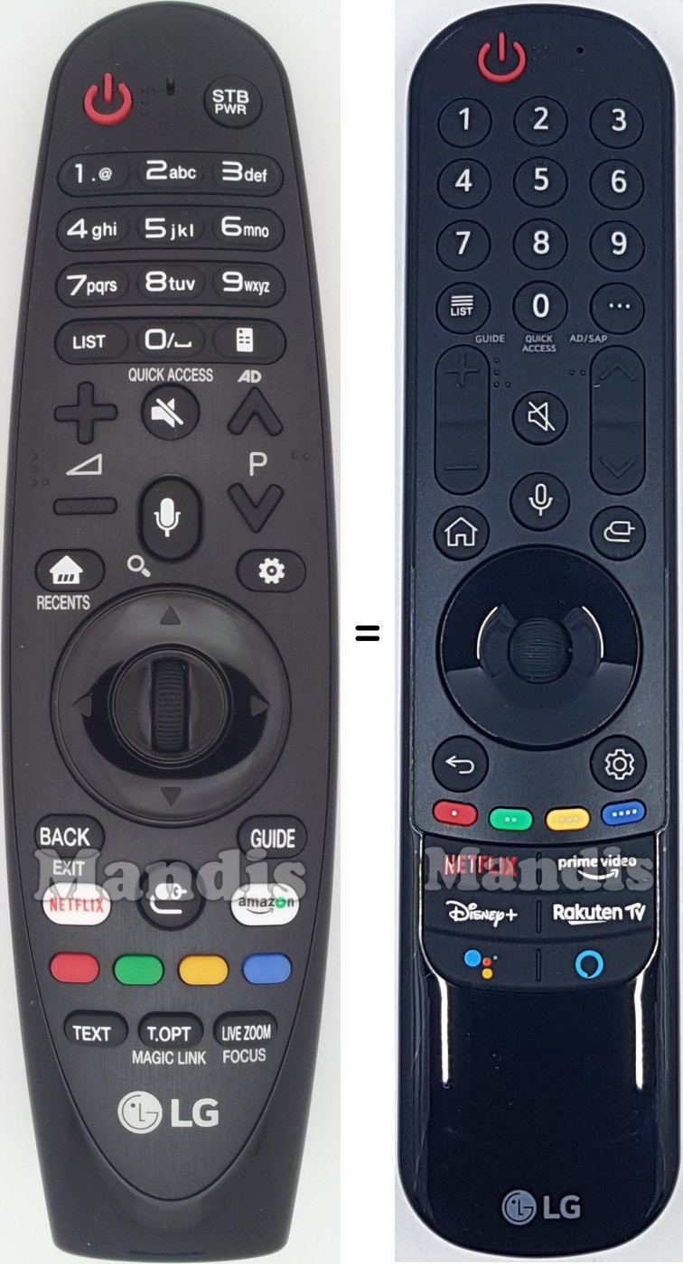 Replacement remote controls that replace in all its functions the remote LG MR21GA (AKB76039701):