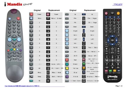 Below, we will show you the correspondence between each button on the original remote control and the button that performs the same function on the replacement remote control. In some cases, you may need to press the SHIFT key before pressing another button to perform certain actions. These additional functions are often not widely used and are included to facilitate understanding of the replacement remote control, or because the original remote control has more buttons than its equivalent.